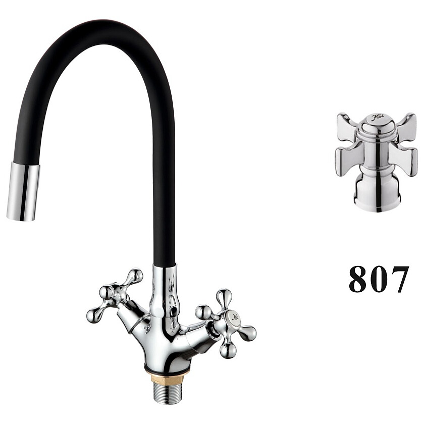 Смеситель для кухни с силиконовым изливом с гайкой— сантехнический прибор для установки на кухонную мойку. Регулирует и смешивает потоки воды для получения необходимой температуры и напора. Имеет гибкий излив, позволяющий гораздо удобнее наполнять ёмкости, мыть посуду и ухаживать за мойкой.