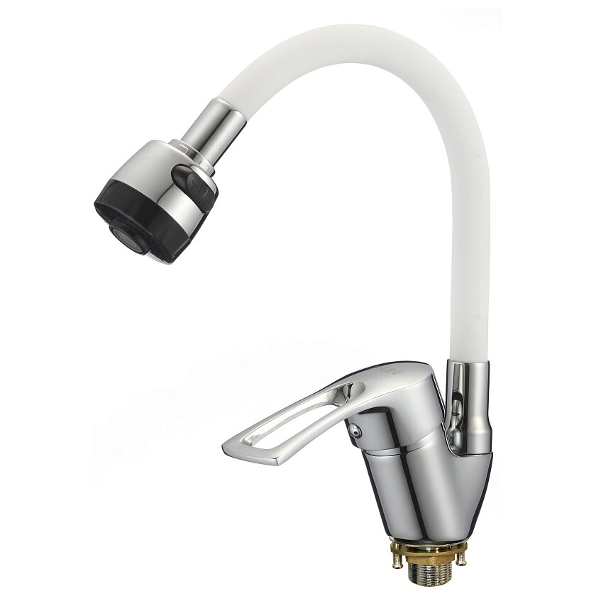 Смеситель для кухни с силиконовым изливом, лейка 2-х функциональная с гайкой— сантехнический прибор для установки на кухонную мойку. Регулирует и смешивает потоки воды для получения необходимой температуры и напора. Имеет гибкий излив, позволяющий гораздо удобнее наполнять ёмкости, мыть посуду и ухаживать за мойкой.