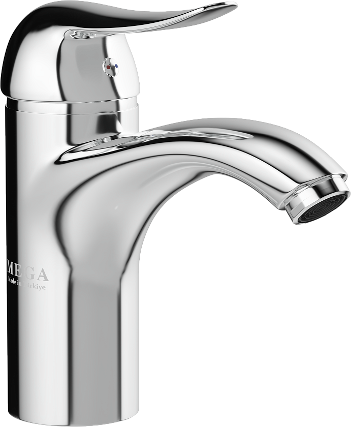 Смеситель для раковины MEGA Mercan MG-SER114 подкупает необычным дизайном с изогнутым изливом.