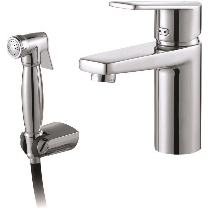 Смеситель для раковины с гигиеническим душем D&K Rhein.Lessing DA1322601 - функциональная линейка смесителей, с элементами high-tech дизайна придадут индивидуальность интерьеру.