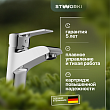 Корпус смеситель для раковины STWORKI «Гётеборг GE-01cr» имеет небольшой угол наклона. Это эстетично и обеспечивает удобное умывание. Материал — прочная латунь. Нанесенное сверху износостойкое покрытие отличается легким уходом, устойчивостью к воздействию бытовой химии и появлению царапин.