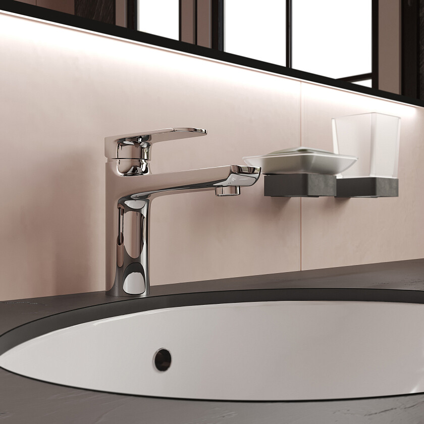 Внутри корпуса установлен керамический картридж с увеличенным ресурсом. Встроенный в излив аэратор делает струю мягкой и объемной. Однорычажная модель для раковины оснащена системой быстрого монтажа — удобным и простым креплением. Для подключения к водопроводу в комплекте гибкая подводка в тройной оплетке длиной 60 см.