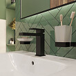 Смеситель для раковины STWORKI «Нюборг NU-01b» подкупает идеальной геометрией с четкими линиями и глубоким черным цветом. Особый стиль придает износостойкое матовое покрытие, простое в уходе. На нем не остается следов пальцев, а насыщенность оттенка не теряется со временем.