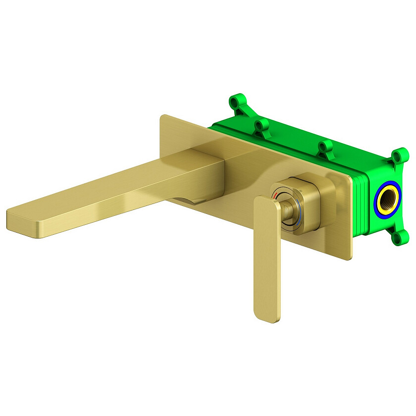 Комплектация: смеситель - 1 шт., монтажная коробка - 1 шт., излив - 1 шт., декоративная накладка смесителя (латунная) - 1 шт., ручка смесителя - 1 шт., ключ шестигранный - 1 шт., инструкция.