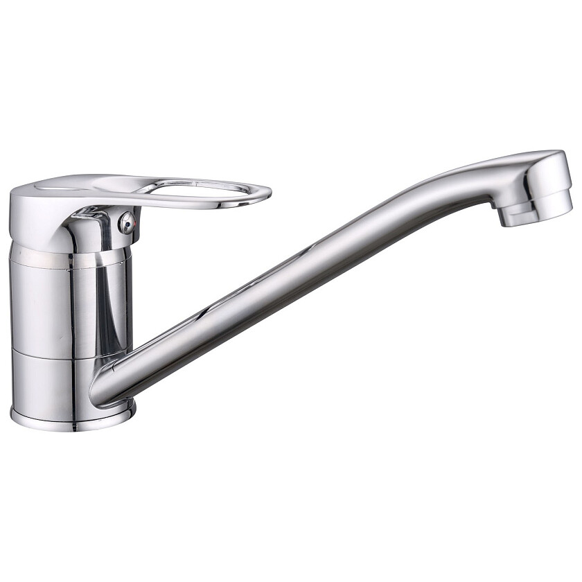 Стильный дизайн подойдет к любому интерьеру. Смеситель в хромированном исполнении добавит элегантности и изысканности вашему помещению.