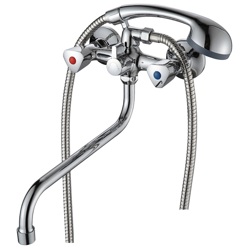 Смеситель для ванны двухвентильный с душевым гарнитуром хром Ammore A4684