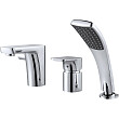 Комплектация: Смеситель, излив с дивертером (переключатель), крепёжная гайка - 3 шт, душевой шланг, соединительный шланг, душевая лейка, паспорт, брендовая сумка