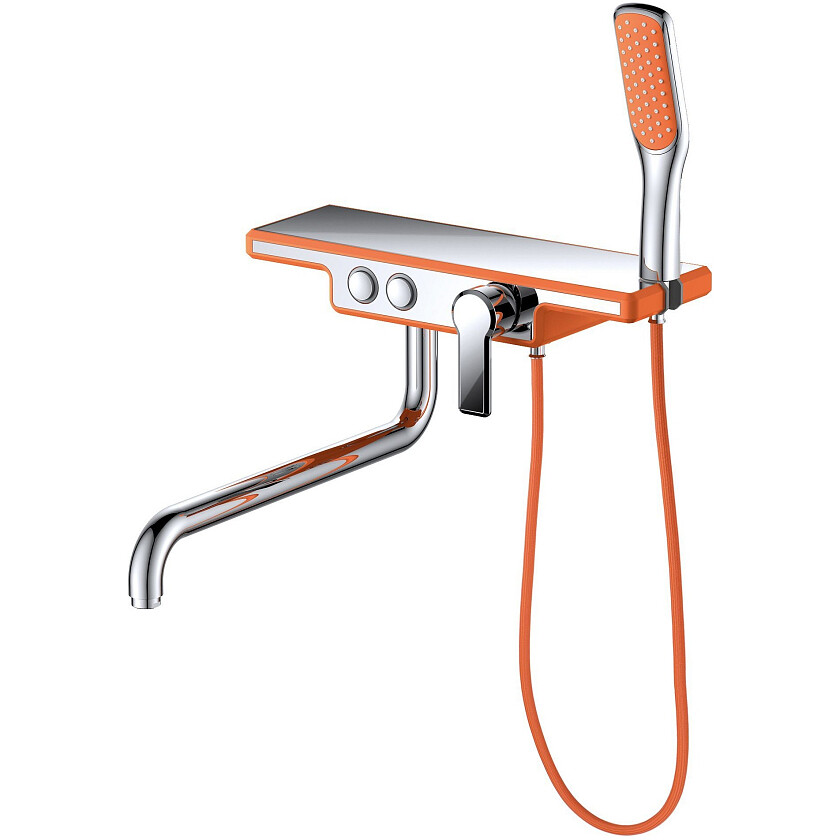 Комплектация: Смеситель, эксцентрики - 2 шт, декоративная шайба (отражатель) - 2 шт, шланг душевой, излив, лейка душевая, держатель душевой лейки, паспорт, брендовая сумка