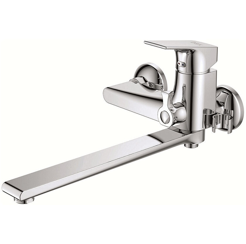 Комплектация: Смеситель, излив, эксцентрики - 2 шт, декоративная шайба (отражатель) - 2 шт, шланг душевой, лейка душевая - 3 режима, держатель душевой лейки, паспорт, брендовая сумка