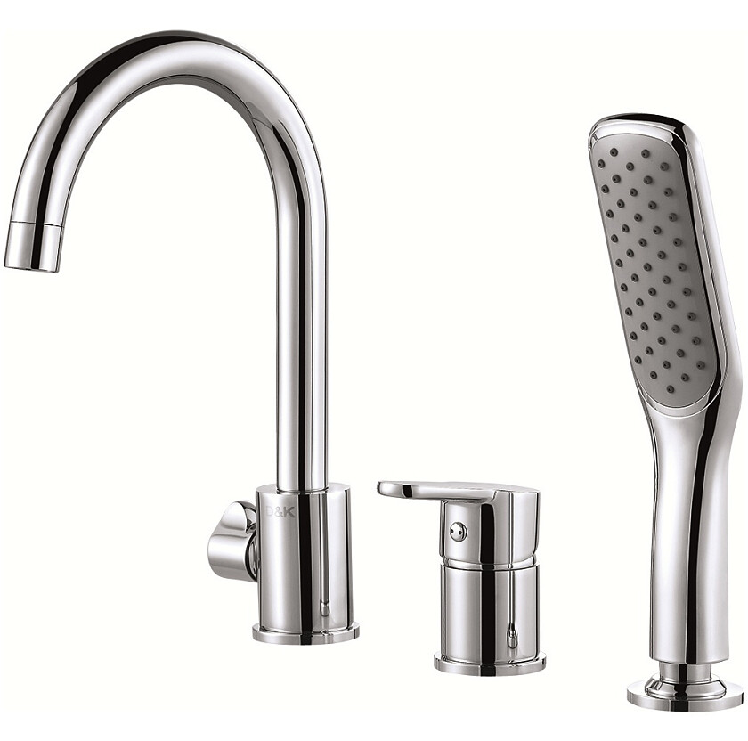 Смеситель на борт ванны однорычажный с душевым гарнитуром хром D&K Rhein Marx DA1394901 - изображение 1