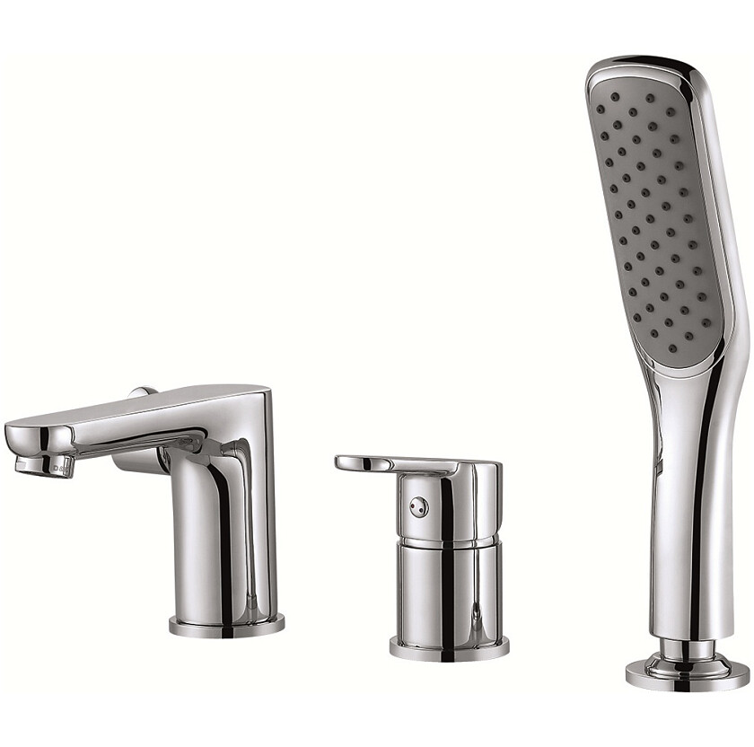 монтаж на 3 отверстия, с антиизвестковым покрытием, с душевым гарнитуром в комплекте, с функцией экономии воды