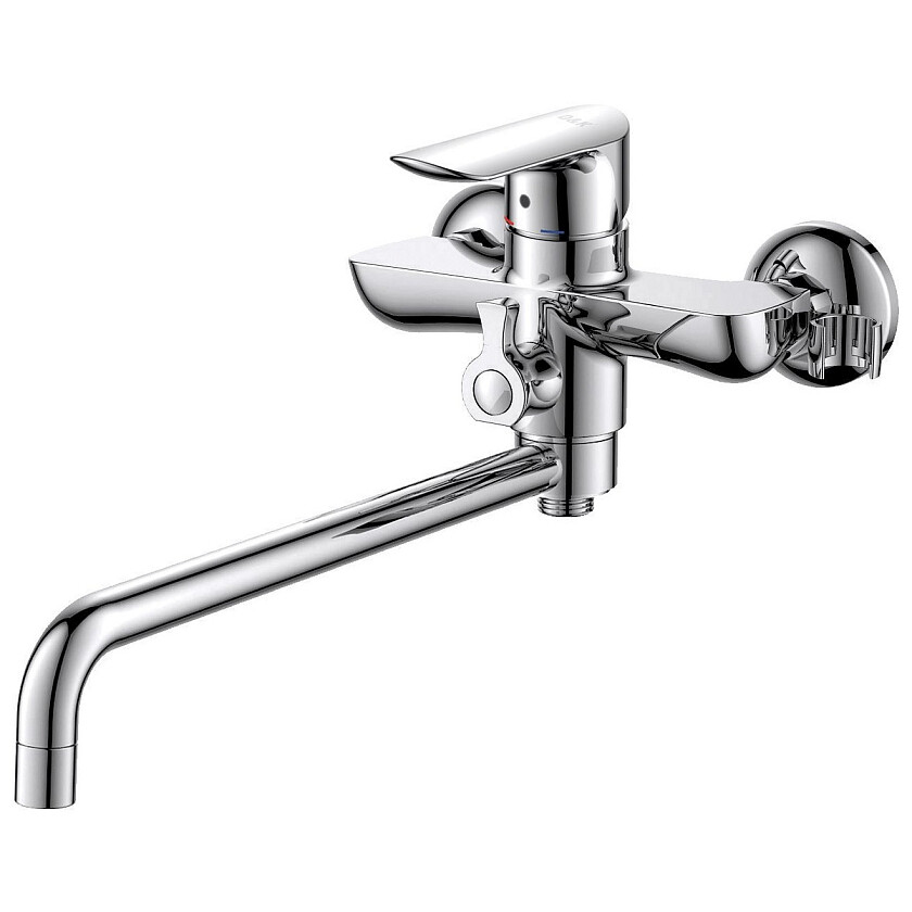 Комплектация: Смеситель, излив, эксцентрики - 2 шт, декоративная шайба (отражатель) - 2 шт, шланг душевой, лейка душевая - 3 режима, держатель душевой лейки, паспорт, брендовая сумка