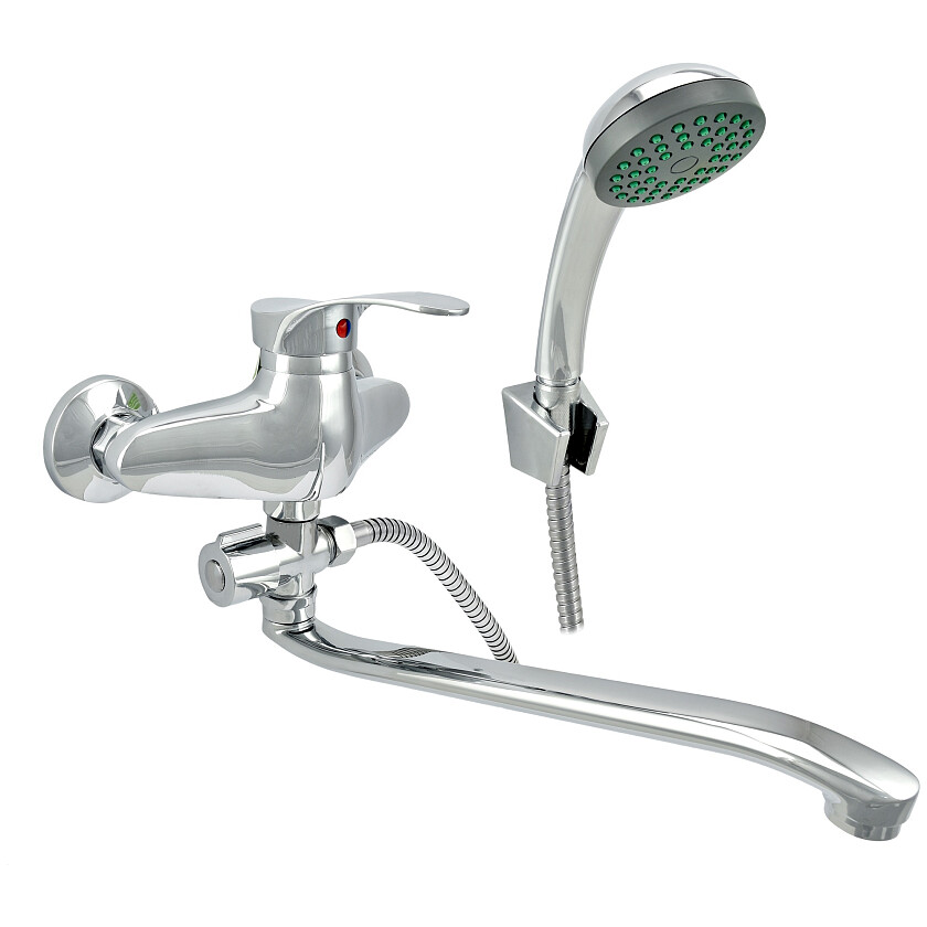 В комплекте лейка и шланг для душа. Смеситель имеет стильный дизайн, поэтому он идеально впишется в интерьер вашей ванной комнаты.