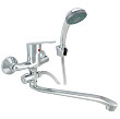 Преимущества: товар первой цены в категории смесители с длинным изливом для ванной комнаты; высокая прочность корпуса, которая достигается за счет его толщины; надежный дивертор: флажковый (керамический).