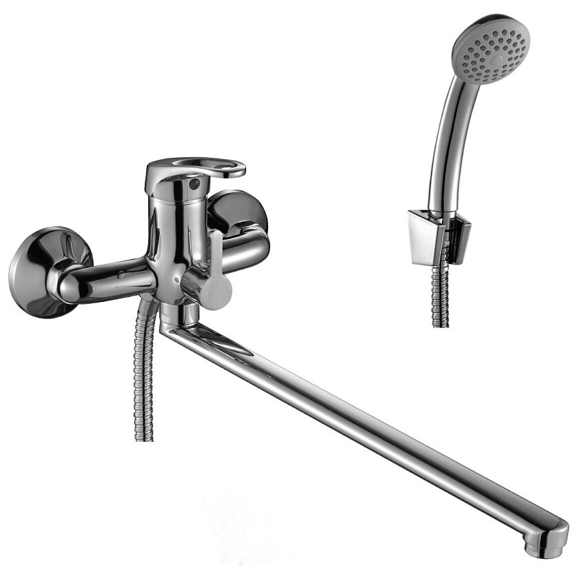 Для принятия душа в комплект входят аксессуары: лейка с системой самоочищения, прочный шланг в двойной оплетке и настенный держатель. Керамический дивертор обеспечивает переключение ровного потока воды даже при низком давлении.