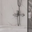 Смеситель с изливом для наполнения ванны выполнен из высокотехнологичного полимера по запатентованной технологии.