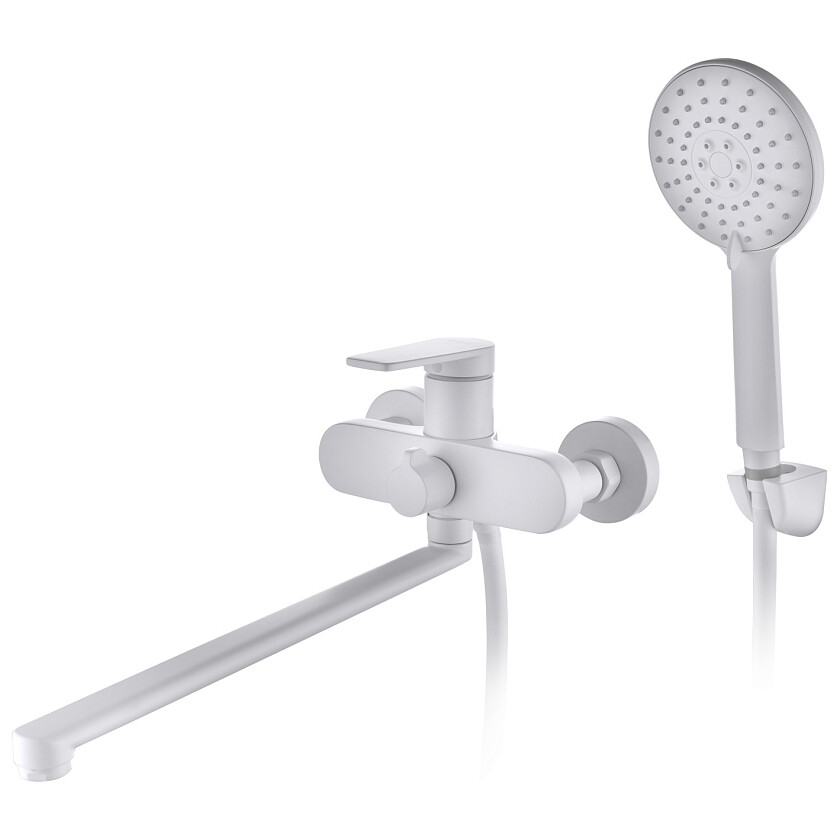 Комплектация: Смеситель, эксцентрики - 2 шт, декоративная шайба (отражатель) - 2 шт, шланг душевой, лейка душевая - 3 режима, держатель душевой лейки, паспорт, брендовая сумка.