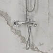 Имеет встроенный девиатор, автоматически переключающий поток с душа на излив при закрытии воды.