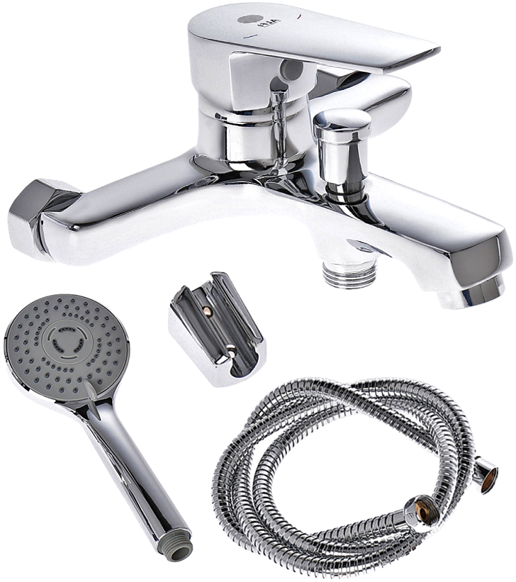 В комплекте со смесителем предусмотрена душевая стойка, состоящая из 3-режимной лейки, шланга и настенного держателя для душа.