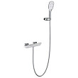 Переключение потока воды на ручную лейку или встроенный излив осуществляется поворотом ручки слева.