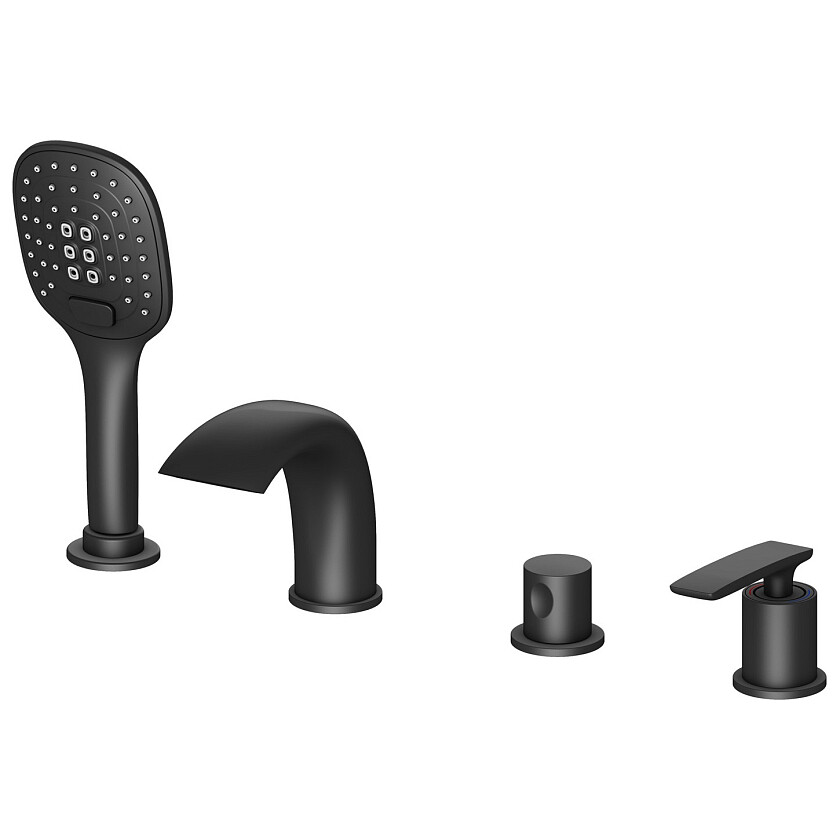 Комплектация: смеситель врезной - 1 шт., излив врезной (латунный) - 1 шт., блок управления режимами, врезной - 1 шт., держатель ручной лейки, врезной - 1 шт., ручная лейка 3-х режимная (пластик) - 1 шт., шланг душа 1,5 м - 1 шт., инструкция.