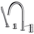 Комплектация: смеситель врезной - 1 шт, излив врезной (латунный) - 1 шт, блок управления режимами, врезной - 1 шт, держатель ручной лейки, врезной - 1 шт, ручная лейка, (пластик) - 1 шт, шланг душа 1,5 м - 1 шт, инструкция - 1 шт.