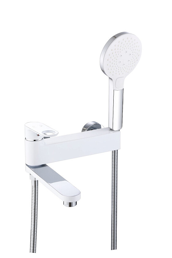 Смеситель для ванны с душевой лейкой и коротким изливом белый, хром D-Lin D181377-C - изображение 1