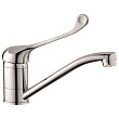 Стильный дизайн подойдет к любому интерьеру. Смеситель в хромированном исполнении добавит элегантности и изысканности вашему помещению.