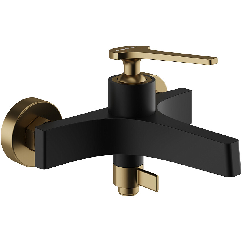 Смеситель для ванны с душем настенный черный, золотой Stworki "Аулум" S06100BG - изображение 1