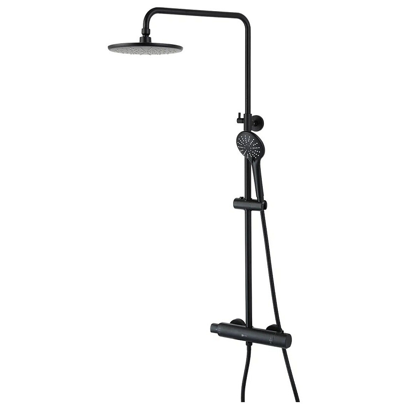 Душевая стойка с верхним душем и термостатом черная Lemark Bronx LM3770BL - изображение 1