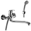 Rossinka A A35-34 – универсальный смеситель с S-образным поворотным изливом. В комплект входят аксессуары для подключения душа: 1-режимная лейка с функцией легкой очистки, шланг длиной 1,5 метра и настенное крепление.