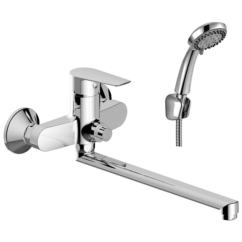 В комплект смесителя Rossinka S S35-35 входят аксессуары для подключения душа: 5-режимная лейка с функцией легкой очистки (диаметр 8,5 см), шланг и настенное крепление.
