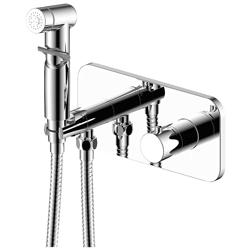 Смеситель встраиваемый с термостатом и гигиеническим душем хром Rossinka X25-59 - изображение 1