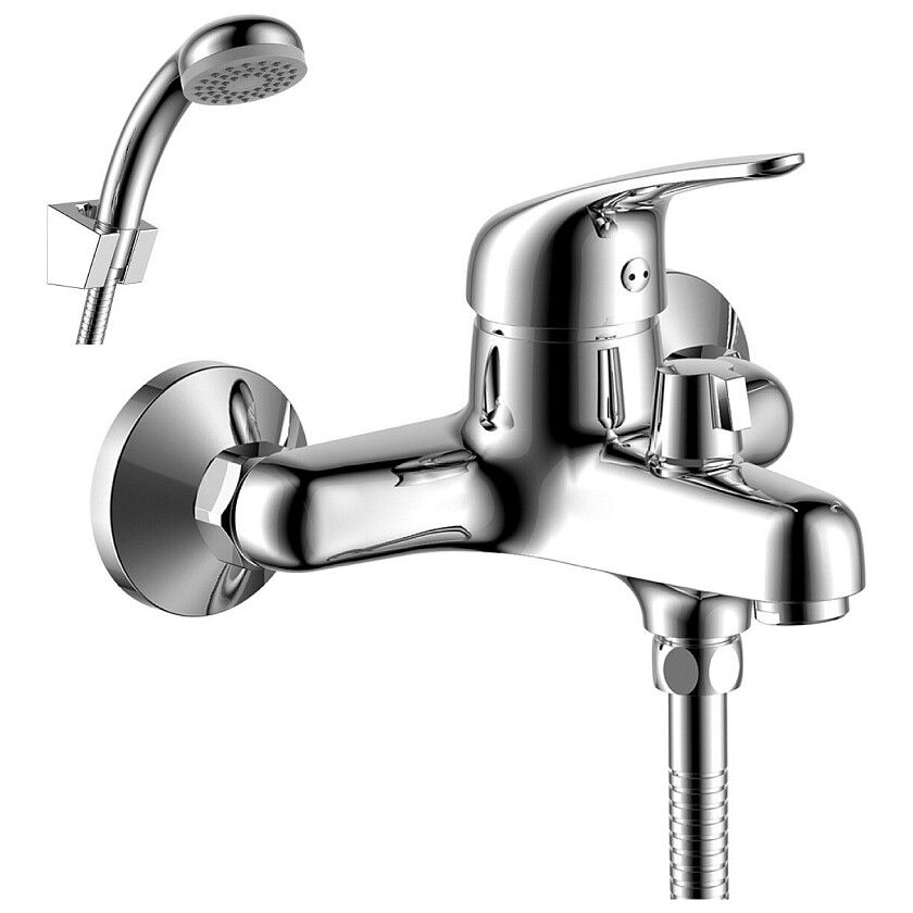 Смеситель Rossinka Y40-30 для ванны с коротким изливом. Диаметр картриджа 40 мм. Аксессуары в комплекте (шланг 1,5 м, настенное крепление, 1-функциональная лейка с функцией легкой очистки).