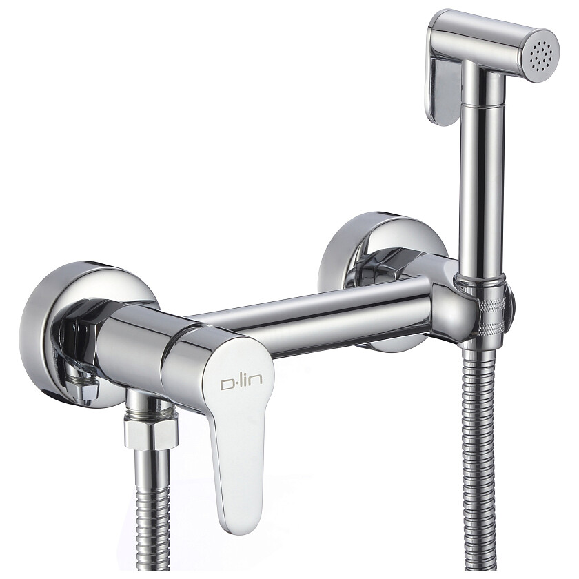 Смеситель с гигиеническим душем в хромированном исполнении. Сложностей при монтаже не возникает. Места соединений шланга с лейкой и смесителем оснащены поворотным конусом или специальными подшипниками, которые препятствуют перекручиванию шланга.