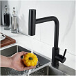 Угол регулировки температуры воды составляет 90 градусов, что исключает упор рычага в стену, при близком расположении. Излив поворачивается на 360 градусов, что позволяет устанавливать смеситель как под правую руку, так и под левую. Монтируется смеситель на одно отверстие и притягивается гайкой, которая жестко фиксирует кран, не позволяя ему в дальнейшем разбалтываться на мойке.