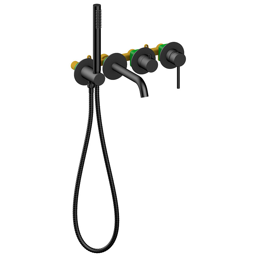 Смеситель для ванны встроенный с душевым гарнитуром черный Timo Saona 2314-03YSM - изображение 3
