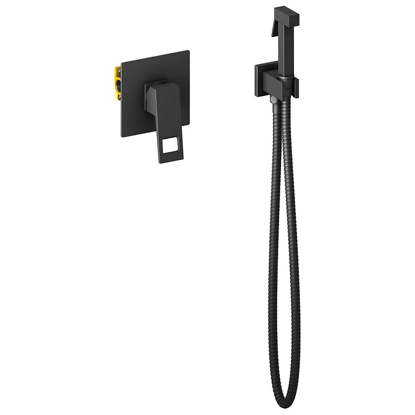 Комплектация: смеситель скрытого монтажа - 1 шт., декоративная накладка смесителя (латунная) - 1 шт., шланг душа 1,2 м - 1 шт., гигиеническая лейка (латунная) - 1 шт., отвод из стены - держатель лейки (латунный) - 1 шт., ручка управления смесителем - 1 шт., инструкция.