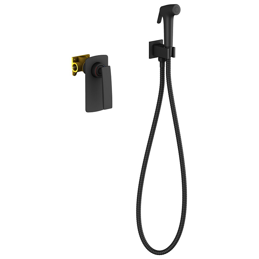 Комплектация: смеситель скрытого монтажа - 1 шт., декоративная накладка смесителя (латунная) - 1 шт., ручка управления смесителем - 1 шт., шланг душа 1,2 м - 1 шт., отвод из стены - держатель лейки (латунный) - 1 шт., гигиеническая лейка (пластик) - 1 шт., инструкция.