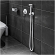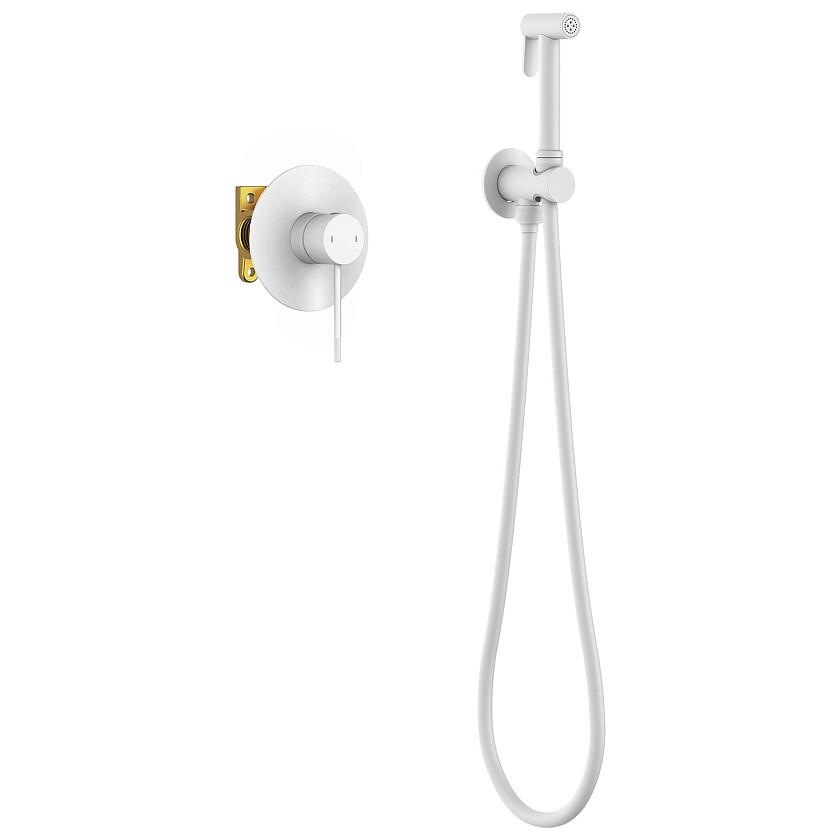 Все коммуникации, крепления и механизмы спрятаны в стену и закрыты декоративной накладкой, снаружи находятся только рычаг управления смесителем и держатель гигиенической лейки с подключением шланга. Такая модель отлично сочетается с инсталляцией для унитаза.