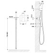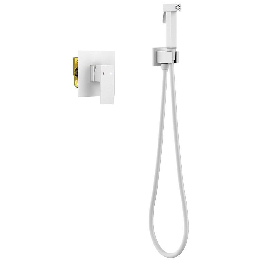 Все коммуникации, крепления и механизмы спрятаны в стену и закрыты декоративной накладкой, снаружи находятся только рычаг управления смесителем и держатель гигиенической лейки с подключением шланга. Такая модель отлично сочетается с инсталляцией для унитаза.