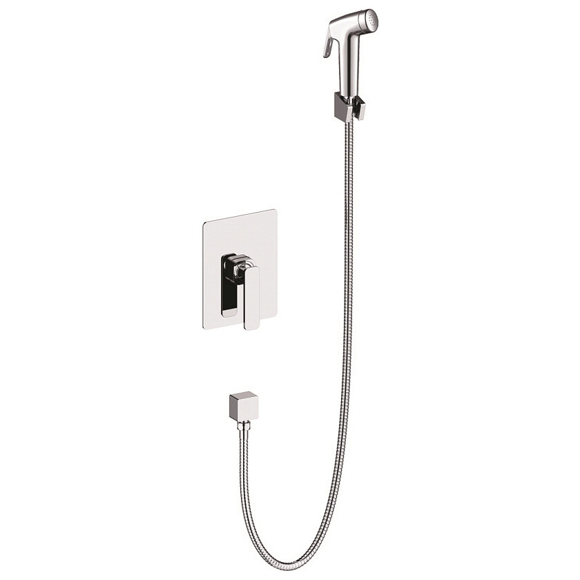 Комплектация: смеситель скрытого монтажа - 1 шт., декоративная накладка смесителя (латунная) - 1 шт., шланг душа 1,2 м - 1 шт., гигиеническая лейка (латунь, пластик) - 1 шт., отвод из стены для подключения шланга - 1 шт., держатель лейки (пластик) - 1 шт., ручка смесителя - 1 шт., ключ шестигранный - 1 шт., инструкция.