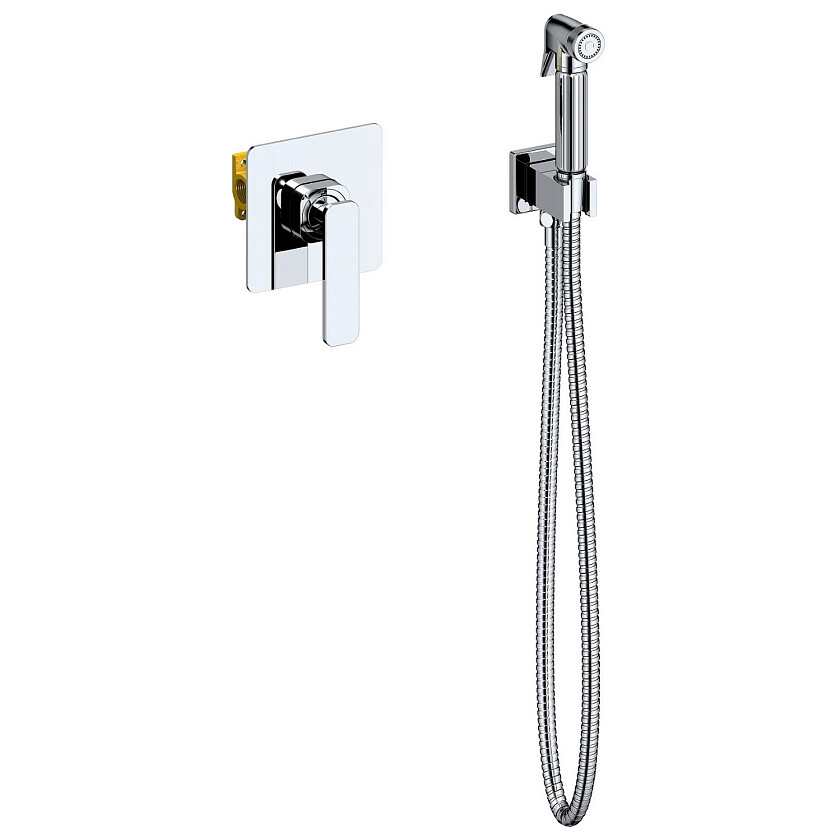 Комплектация: смеситель скрытого монтажа - 1 шт., декоративная накладка смесителя (латунная) - 1 шт., шланг душа 1,2 м - 1 шт., гигиеническая лейка (латунная) - 1 шт., отвод из стены / держатель лейки (латунный) - 1 шт., ручка смесителя - 1 шт., ключ шестигранный - 1 шт., инструкция.