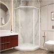 Уголок из матового стекла и белого алюминиевого профиля лаконично впишется практически в любое оформление ванной комнаты.