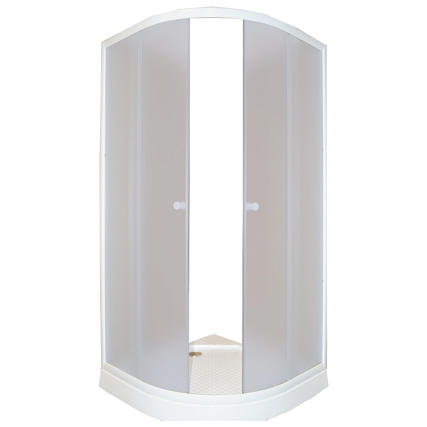 Уголок из матового стекла и белого алюминиевого профиля лаконично впишется практически в любое оформление ванной комнаты.