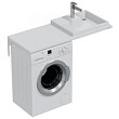 В целях экономии полезного пространства можно установить раковину над стиральной машиной. Раковина красиво совмещается с бытовой техникой, и выглядит так, как будто входит в ее конструкцию.