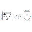 В комплекте присутствует легкосъемное сидение с крышкой, оснащенное системой микролифт (для плавного и бесшумного опускания). Крепления к чаше выполнены из стали, а само сидение - из долговечного полимерного материала – дюропласта с антибактериальным покрытием. Снятие осуществляется одним нажатием кнопки. Антивсплеск обеспечивается конструкцией чаши (воронкообразной). Каскадная система слива омывает всю внутреннюю поверхность чаши. Это обеспечивает качественное очищение.