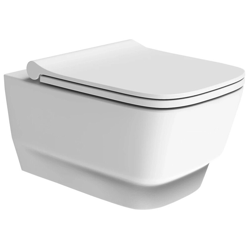 Унитаз подвесной имеет изящные прямоугольные формы. Изделие относится к числу ставших очень популярными в последнее время безободковых унитазов, которые легко чистить, так как нет "заповедных" мест, которые призваны сдерживать воду, но которые так тяжело чистить, хотя именно там и скапливается грязь.
