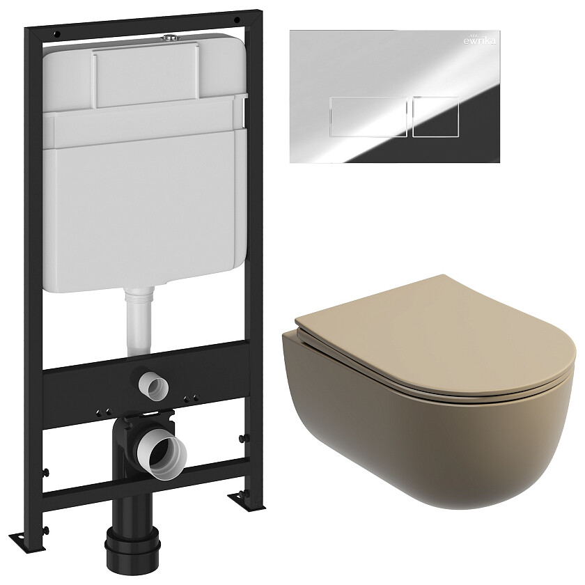 Комплект: Унитаз подвесной Ceramicanova Modena Rimless CN6063MC капучино матовый, Инсталляция EWRIKA ProLT 0026-2020, Кнопка 0041 хром.
