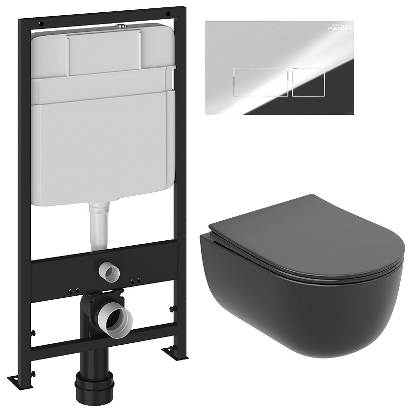 Комплект: Унитаз подвесной Ceramicanova Modena Rimless CN6063MDH темный антрацит матовый, Инсталляция EWRIKA ProLT 0026-2020, Кнопка 0041 хром.